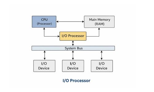 - I/O Processor (IOP) dedicated processor है जो I/O tasks independently handle करता है और CPU को main processing के लिए free रखता है।