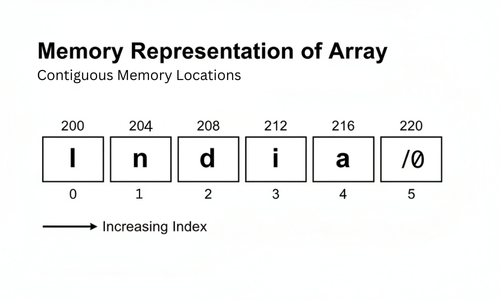 C-Style String एक character array होता है, जिसके अंत में ‘\0’ (null terminator) लगाया जाता है। यही null character इस बात का संकेत देता है कि string कहाँ खत्म हो रही है।