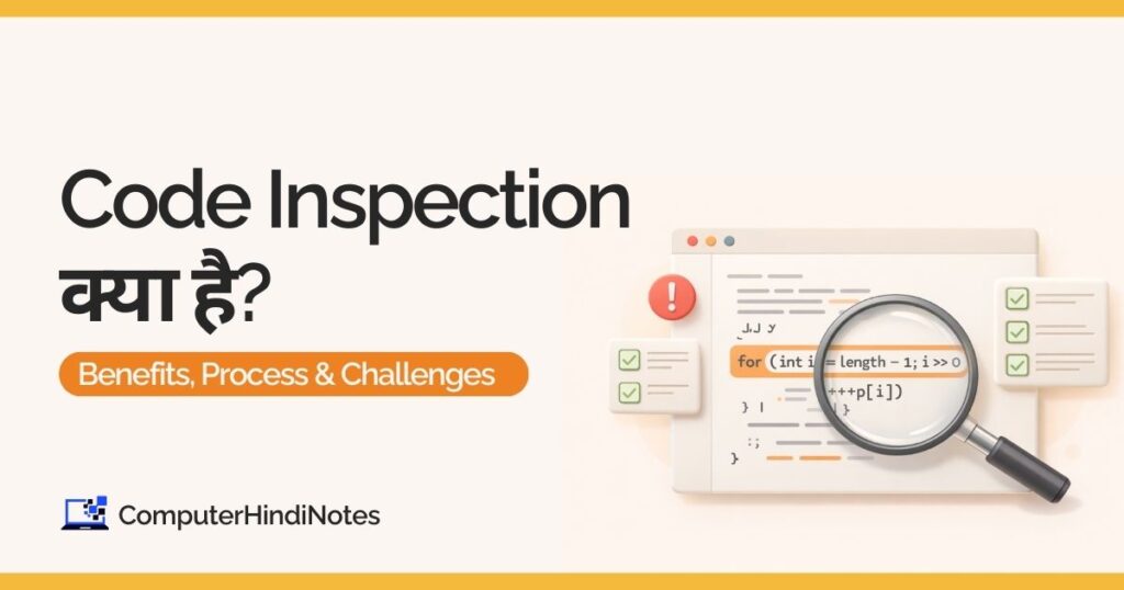 Code Inspection एक formal और structured process है, जिसमें software developers या team members source code को ध्यान से पढ़ते हैं, ताकि उसमें मौजूद bugs, logic errors, design flaws, coding standard violations आदि को early stage में detect किया जा सके।