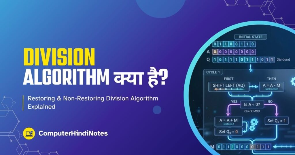 Division Algorithm एक step-by-step procedure या method है, जिसका उपयोग Computer Architecture में binary numbers (0 और 1) को divide करने के लिए किया जाता है।