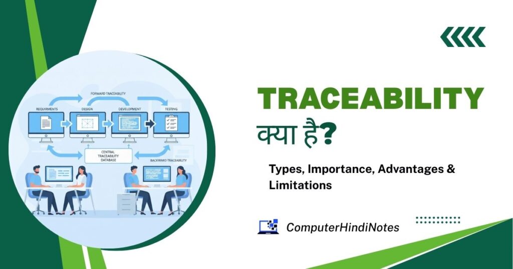 - Traceability से यह पता चलता है कि कौन सा developer, designer या tester किस step के लिए responsible है।