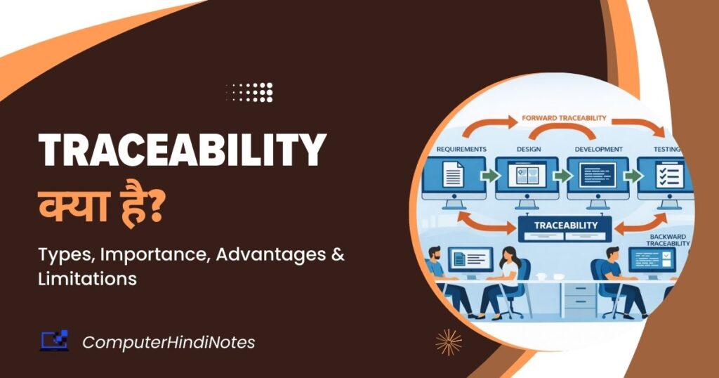 - Traceability से यह पता चलता है कि कौन सा developer, designer या tester किस step के लिए responsible है।